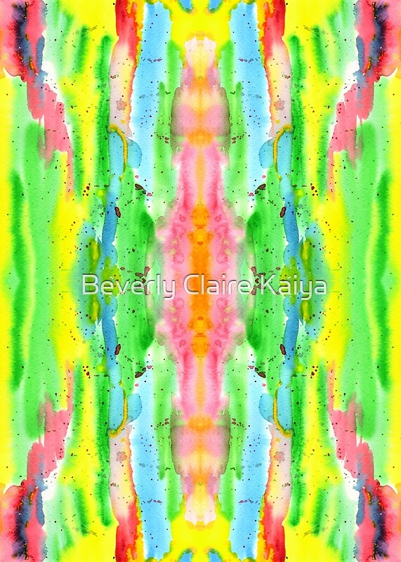 Colorful, hand-painted abstract watercolor background texture in bright rainbow tones of red, yellow, green and blue, with red splatter. I had fun painting this colorful piece using transparent watercolor on paper. Makes a wonderful gift for anyone who enjoys abstract designs and rainbow palettes.