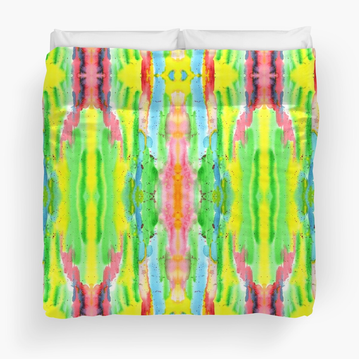 Hand-Painted Abstract Watercolor in Bright Rainbow Hues Duvet Cover