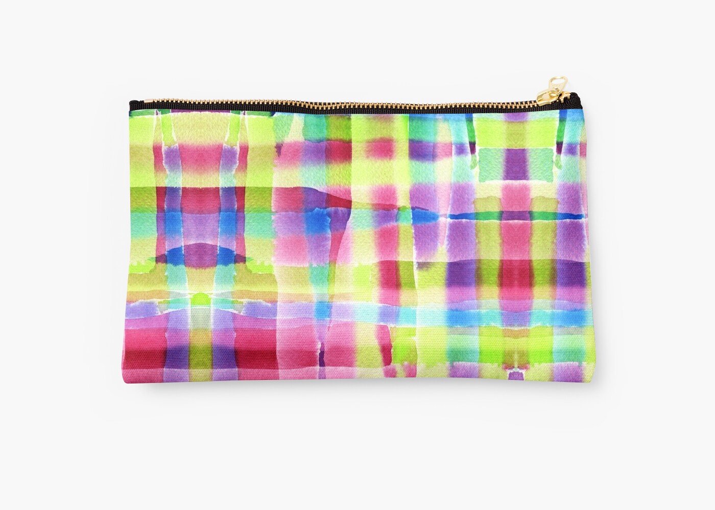 Hand-Painted Gingham Weave Watercolor Rainbow Studio Pouch