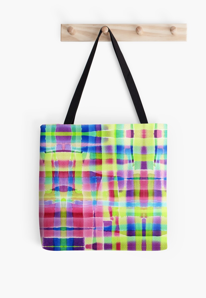 Hand-Painted Gingham Weave Watercolor Rainbow Tote Bag